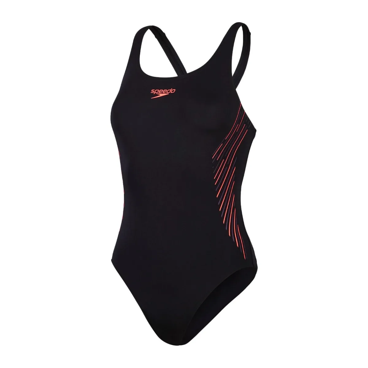 Dit sportieve badpak heeft een abstracte print aan de zijkanten van het pak. De Muscleback stijl biedt flexibiliteit tijdens je fitnesstraining en heeft een gemiddelde nek- en rugopening, zodat je je zelfverzekerd en veilig voelt tijdens je workout. Het is gemaakt van onze duurzame Endurance+ stof, droogt snel en is 100% chloorbestendig. Bovendien is een van de garens in de Endurance+ stof gemaakt van 100% post-consumer afval, zoals gerecyclede plastic flessen.