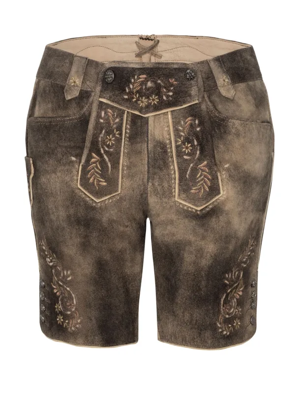 Type sluiting: Knoopsluiting; Materiaal: Leer; Motief: Effen; Details: Borduursels; Extra's: Riemlussen; Lengte: Kort/mini; Pasvorm: Slimfit
