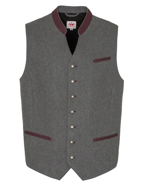 SPIETH & WENSKY Klederdracht gilet ‘Aris’ grijs gemêleerd / braam