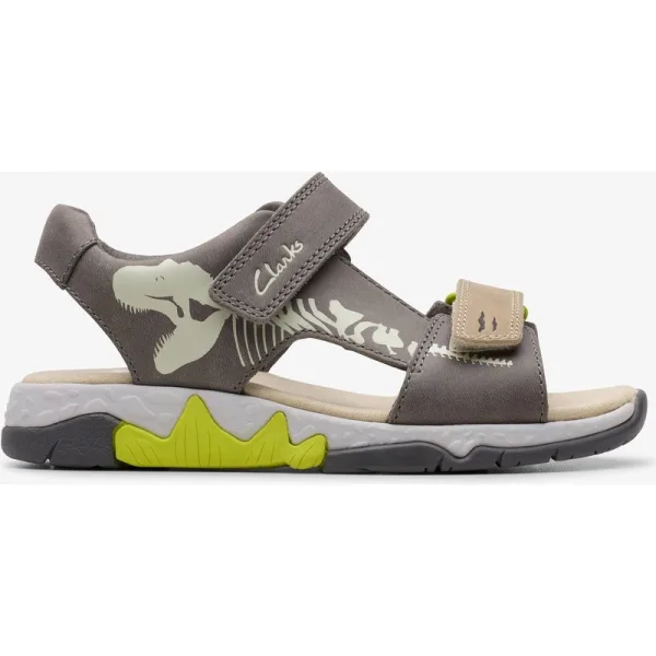 Een paar dat ze aan willen houden, onze Spiney Tail kindersandaal is gemaakt van zacht grijs leer dat stevig genoeg is om zowel parkavonturen als zonnige stranddagen te doorstaan. Met een supercoole PLAYPRINTS zool die bij elke stap een magische afdruk achterlaat, zorgt een zachte schuimvoetbed en een makkelijk te gebruiken klittenbandsluiting ervoor dat kleine voetjes veilig en comfortabel blijven.
