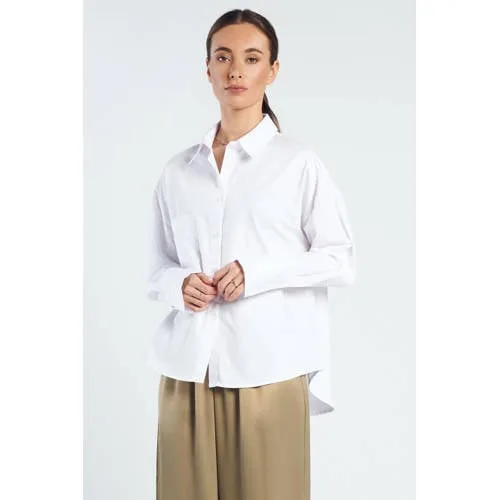 De 'Spooq the label Lois blouse' is een witte blouse die je garderobe het hele jaar door aanvult. De boxy pasvorm geeft een moderne uitstraling, terwijl de klassieke kraag en lange mouwen zorgen voor een nette en verzorgde look. Gemaakt van 100% katoen voelt de stof zacht en luchtig aan, ideaal voor lentedagen en voor laagjes in andere seizoenen.Details die het verschil maken Boxy pasvorm voor een modern, recht silhouet Klassieke kraag en knoopsluiting aan de voorkant Effen witte kleur die makkelijk te combineren is Gemaakt van 100% katoen voor een soepele, ademende stof Lange mouwen zonder zakken voor een rustige uitstraling Onderhoudsvriendelijk, wasbaar op 30 graden Lauw strijkbaar en niet geschikt voor de droogtrommelVeelzijdig in elke outfitDeze blouse past makkelijk in je dagelijkse routine. Draag de 'Lois blouse' op een rechte jeans voor een ontspannen geheel of combineer met een pantalon voor een meer geklede look. De boxy snit valt recht, zodat de blouse zowel in als over een broek of rok goed tot zijn recht komt.Spooq the label, met oog voor stijlSpooq the label staat voor toegankelijke mode met een moderne uitstraling. De collecties zijn ontworpen met aandacht voor pasvorm en draaggemak, zodat je elke dag kunt rekenen op kleding die prettig voelt en er verzorgd uitziet.Een basisblouse die je eenvoudig in verschillende outfits verwerkt.
