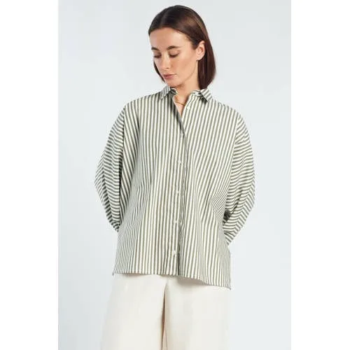 Fris, licht en toch gekleed, dat is de uitstraling van de Spooq the label Mara blouse. De olijfgroene en witte strepen geven een rustige, moderne look die zowel thuis als op kantoor past. Door de rechtvallende pasvorm valt de blouse losjes langs het lichaam, wat een ontspannen silhouet geeft zonder te wijd te ogen. De klassieke kraag en knoopsluiting maken het een veelzijdig item dat je het hele seizoen door kunt dragen.Details die je elke dag kunt dragen Gemaakt van 100% katoen voor een soepele, ademende stof Olijfgroen/witte streepprint voor een frisse, tijdloze uitstraling Rechtvallende pasvorm die comfortabel zit en makkelijk te stylen is Langemouwmodel, ideaal voor het voorjaar en koelere dagen Klassieke kraag en volledige knoopsluiting aan de voorzijde Geen zakken voor een rustige, nette voorkant Wasbaar op 30 graden en warm strijkbaar, niet geschikt voor de droogtrommelVan video meeting tot weekendlunchDeze blouse past moeiteloos in verschillende momenten van je dag. Combineer met een rechte jeans voor een ontspannen look of draag de blouse op een nette broek naar je werk. De streepprint oogt verzorgd op beeldscherm en in real life, waardoor het een fijne keuze is voor zowel thuiswerken als een afspraak buiten de deur.Spooq the label: eigentijdse favorietenSpooq the label focust op draagbare items met een moderne twist. In de Boutique collectie vind je kleding die aansluit bij de trends, maar tegelijk eenvoudig te combineren blijft met wat je al in de kast hebt. Zo voeg je stap voor stap fijne favorieten toe waar je vaak naar grijpt.Een luchtige blouse die je garderobe op een rustige, stijlvolle manier aanvult.