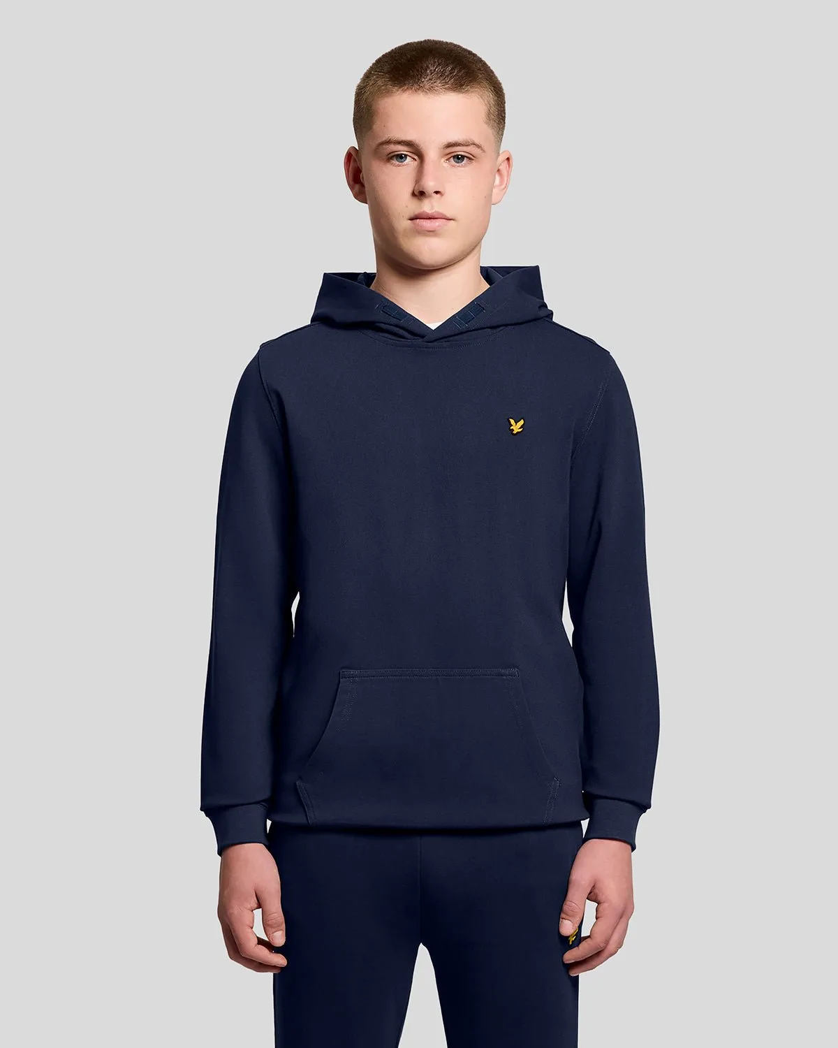Sportklare warmte voor kinderen. Deze brushback fleece hoodie heeft een normale pasvorm, een ruime capuchon en een kangaroo-zak, afgewerkt met de geborduurde arend op de borst. - Brushback fleece voor zachte warmte - Normale pasvorm voor gemakkelijke beweging - Ruime capuchon voor extra bescherming - Kangaroo-zak voor warme handen - Geborduurd arendlogo op de borst