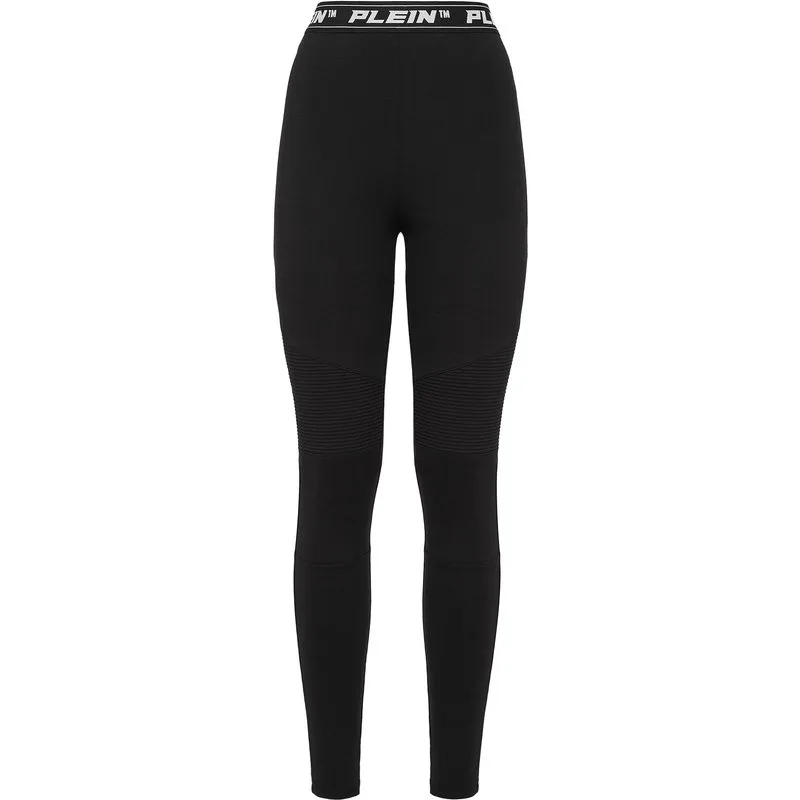 Stretch katoenen legging met hoge taille en doorgestikte details. Elastische tailleband met het merk. Zomen gestikt met twee naalden.