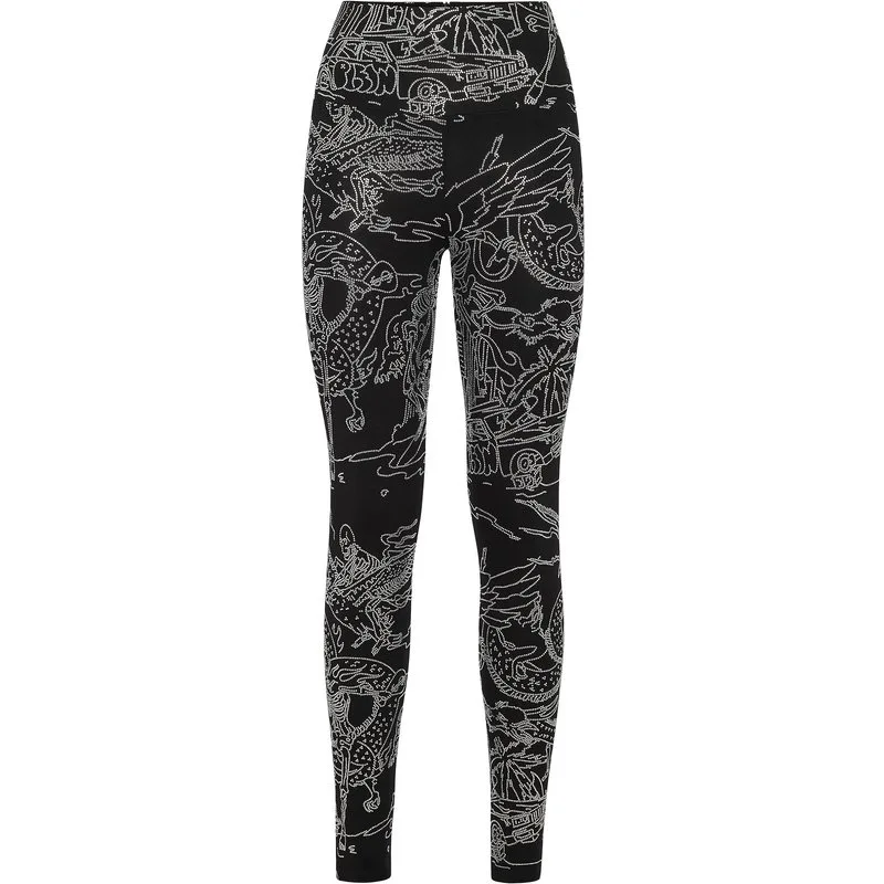 Verfraaid Stretch katoenen legging met hoge taille versierd met het strass Skeleton Tattoo patroon. Elastische tailleband met strass-steentjes en het merkopschrift. Zomen gestikt met twee naalden.