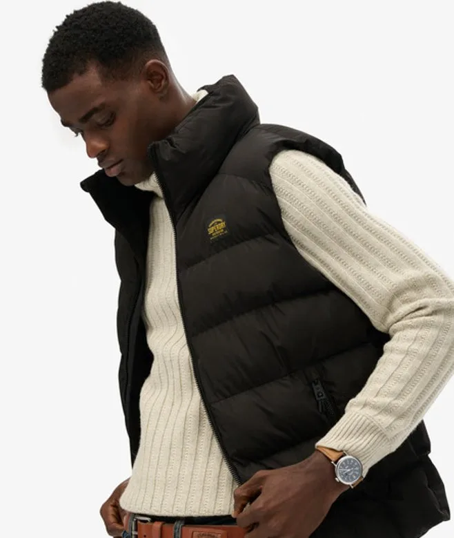 Relaxte pasvorm - de klassieke Superdry-pasvorm. Niet te nauwsluitend, niet te ruim, precies goed. Kies je gebruikelijke maat Hoge kraag met een tweede geribde voering en ritssluiting Licht geborstelde binnenvoering en een verstelbare zoom met elastisch koord Twee buitenzakken met ritssluiting en een binnenzak van mesh Kenmerkend label op de borst Onze Sports-pufferbodywarmer is het perfecte kledinglaagje voor het komende seizoen. Hij is dik gevoerd en voorzien van stijlvolle afwerkingen. Het tr