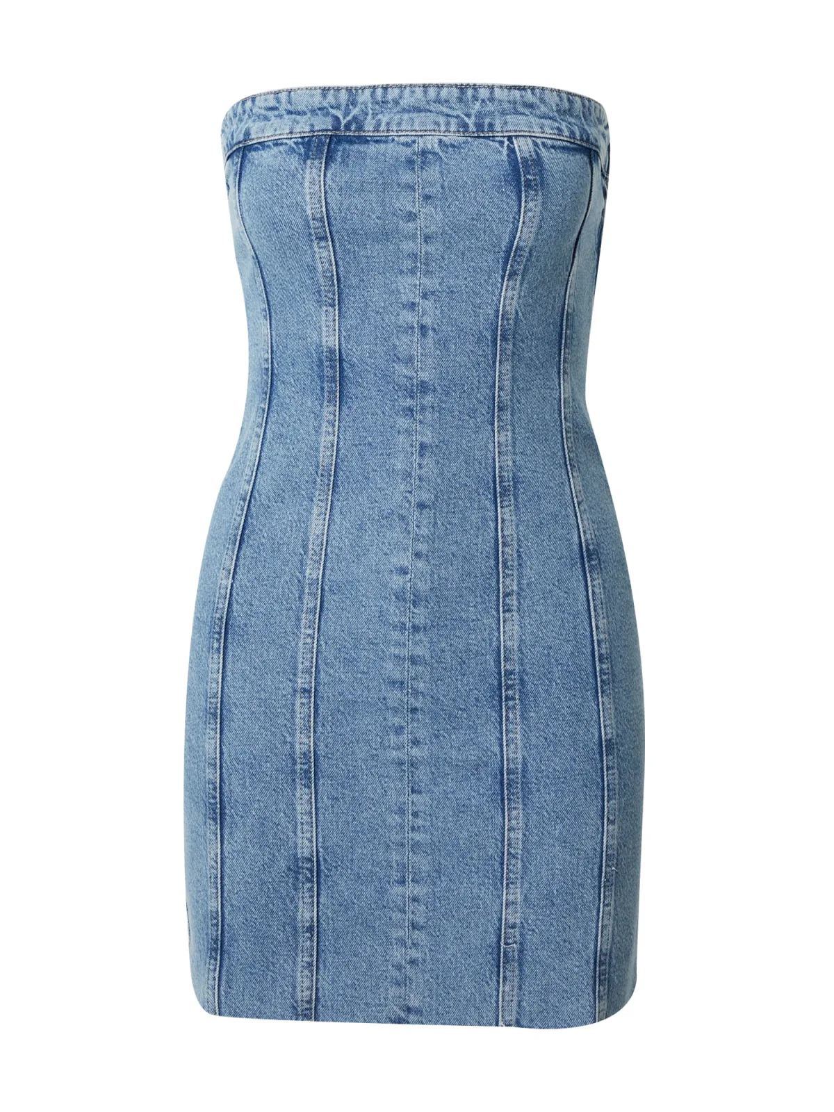 Materiaal: Denim; Motief: Effen; Soort bandjes: Bandeau; Lengte: Kort/mini; Pasvorm: Normale pasvorm; Armlengte: Mouwloos