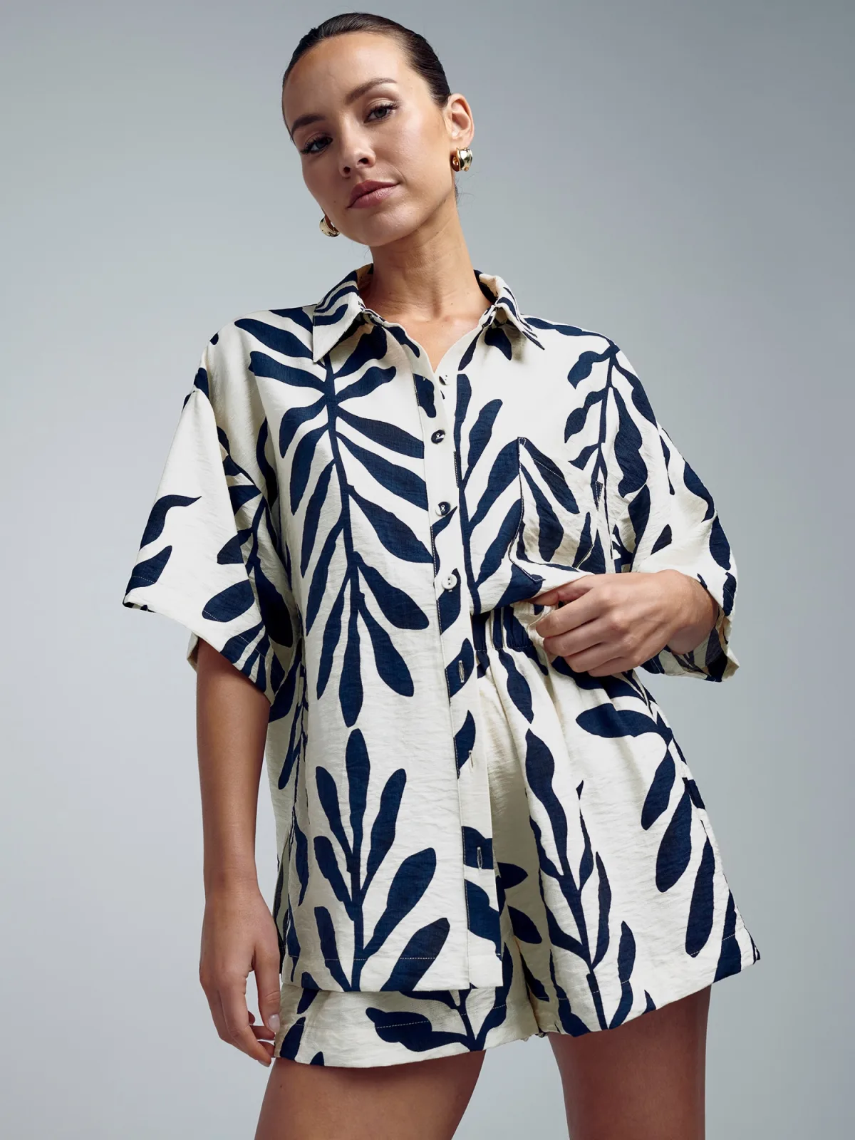 Blouse type: Klassieke blouse; Design: Gevoerde zoom/rand, Knop placket, Borstzak; Type sluiting: Knoopsluiting; Materiaal: Viscose; Motief: Bloemenprint; Kraag: Kentkraag; Details: Plooien; Extra's: All-over patroon, Gladde stof; Pasvorm: Wijde pasvorm; Armlengte: Halve mouw; Lengte: Lange pasvorm