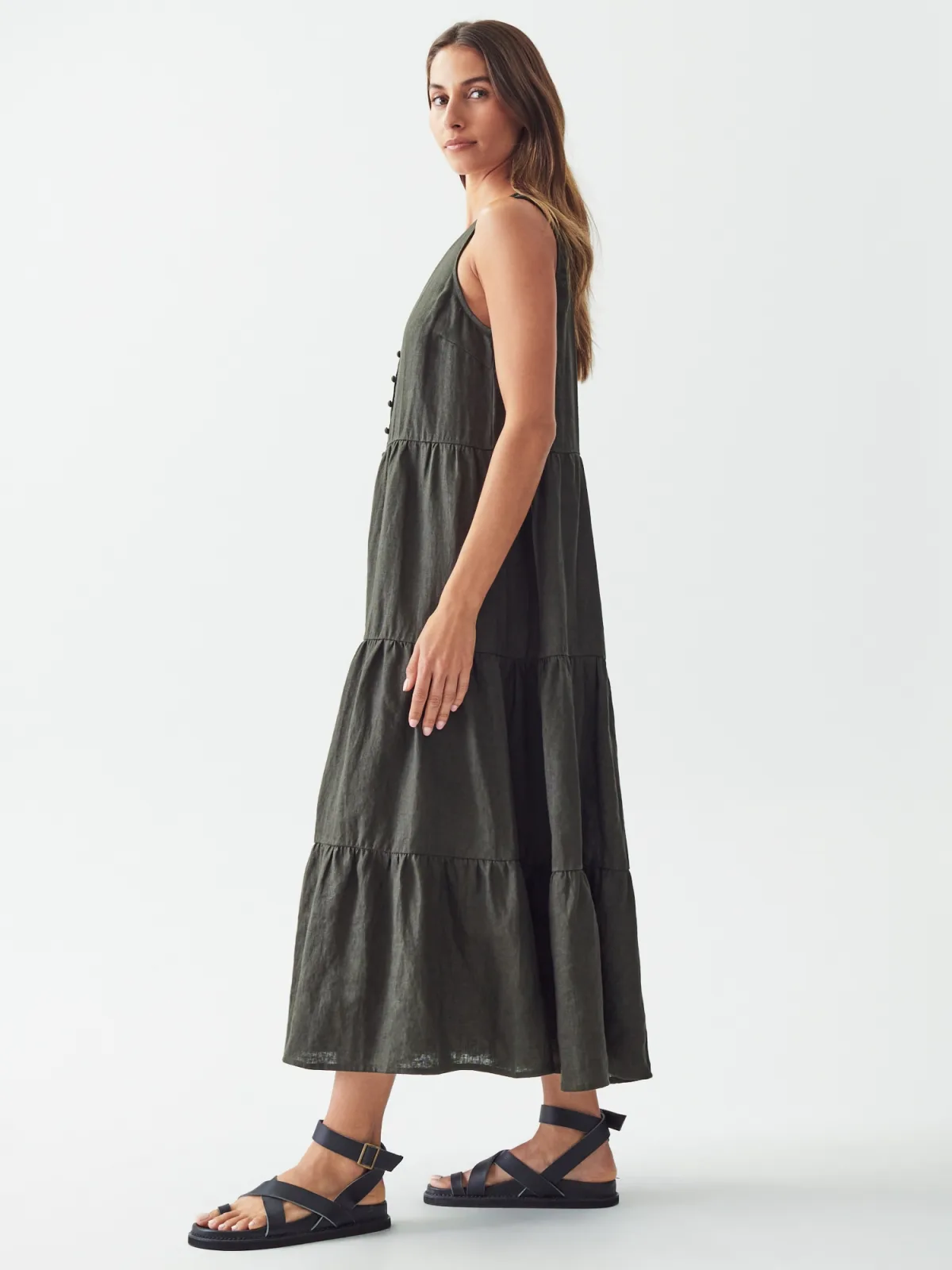 Design: Figuurnaden, Knop placket; Type sluiting: Knoopsluiting; Materiaal: Linnen; Motief: Effen; Kraag: Zonder kraag; Soort bandjes: Normale bandjes; Details: Volant, Gedrapeerd; Extra's: Lichte stof, Overdekte knopen; Lengte: 7/8 lengte; Snit: Uitlopend; Pasvorm: Wijde pasvorm; Armlengte: Mouwloos