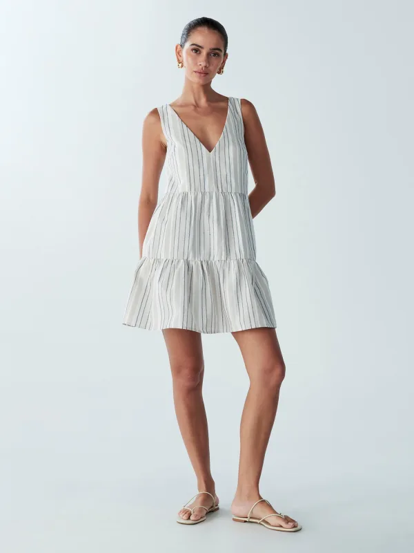 Materiaal: Katoen; Halstype: V-hals; Motief: Gestreept; Soort bandjes: Brede bandjes; Details: Volant, Gedrapeerd; Lengte: Kort/mini; Pasvorm: Normale pasvorm; Armlengte: Mouwloos