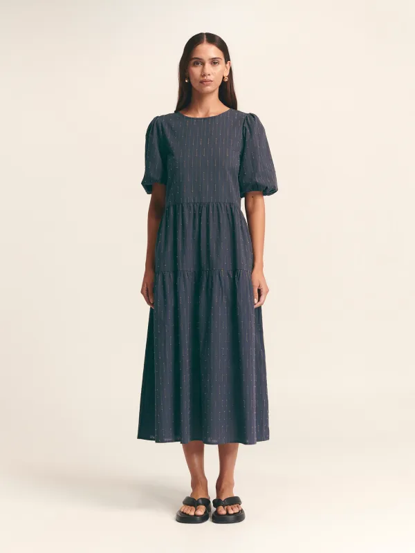 Specificaties: St MRLO Jurk ‘Sitia’ navy / lichtbruin