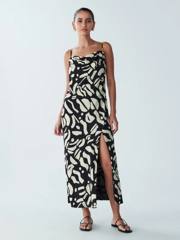 Materiaal: Viscose; Halstype: Watervalhals; Soort bandjes: Spaghettibandjes; Lengte: 7/8 lengte; Pasvorm: Normale pasvorm; Armlengte: Mouwloos