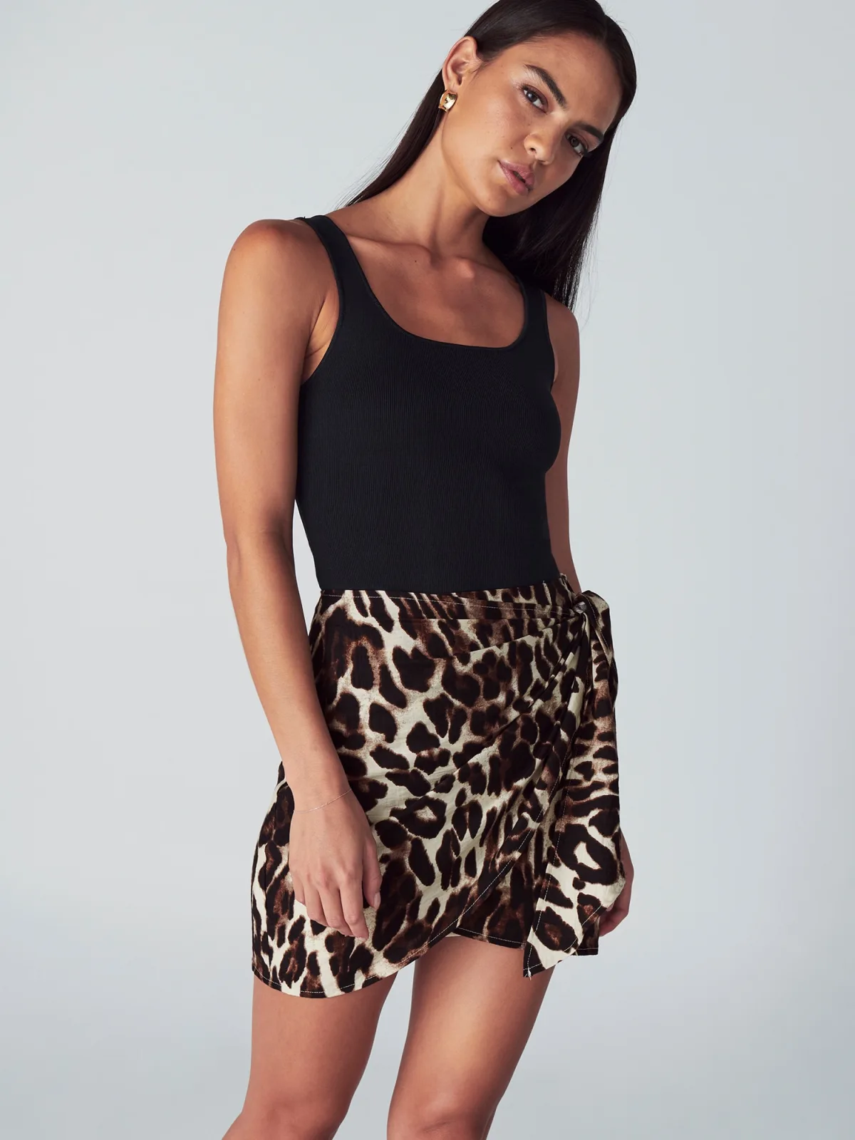 Design: Asymmetrische zoom; Materiaal: Viscose; Motief: Dierenprint; Rokvorm: Wickelrock; Details: Wikkel design; Extra's: All-over patroon; Lengte: Kort/mini; Pasvorm: Normale pasvorm