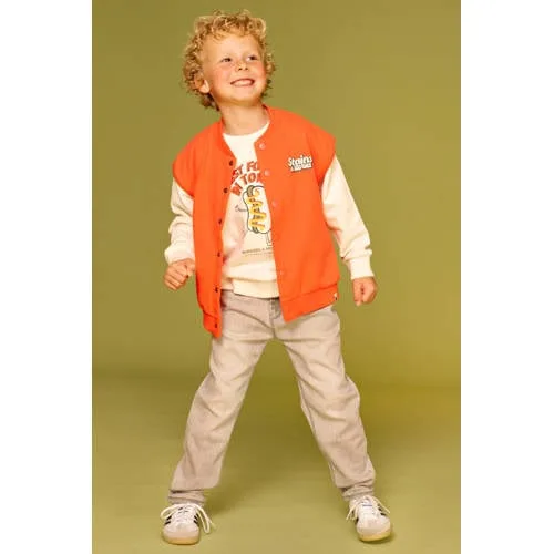 Deze Stains&Stories regular fit jongens jeans in light grey denim is een praktische basis voor iedere dag. De lichtgrijze wassing oogt modern en stoer en laat zich makkelijk combineren met T-shirts, truien en hoodies. De regular fit geeft genoeg ruimte om vrij te bewegen, terwijl de stretch in de stof zorgt dat de broek comfortabel meebuigt tijdens spelen, fietsen en rennen.Praktische details voor elke dag Gemaakt van 75% katoen, 23% polyester en 2% elastaan voor een zachte, soepele denim met extra stretch Regular fit pasvorm, niet te smal en niet te wijd, geschikt voor dagelijks gebruik 5-pocket model met twee achterzakken, twee steekzakken en een muntzakje Handige rits- en haaksluiting voor zelfstandig aan- en uitkleden Effen light grey denim die makkelijk te combineren is met verschillende kleuren en prints Per stuk geleverd, handig om gericht een favoriete jeans bij te kiezenComfortabele jeans voor school en weekendDeze jongens jeans past goed bij schooldagen en vrije tijd. De lichte kleur combineert met zowel sportieve sneakers als nette schoenen, waardoor de broek in veel outfits terug kan komen. De stretchdenim geeft voldoende bewegingsvrijheid, ook tijdens actief spelen.Stains&Stories voor alledaags gemakStains&Stories ontwerpt kinderkleding met aandacht voor pasvorm en draagcomfort. De jeans zijn geschikt voor intensief gebruik en sluiten aan bij het dagelijkse leven van actieve kinderen. Zo ontstaat kleding die goed aanvoelt en er verzorgd uitziet.Een betrouwbare, lichte denim die moeiteloos meebeweegt met drukke dagen.