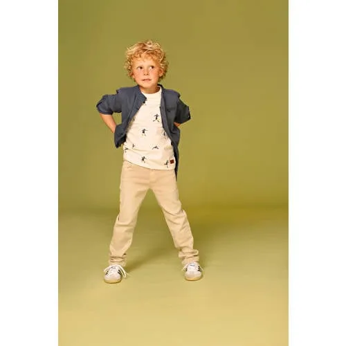 Een speels shirt dat makkelijk combineert, dat is dit jongens T-shirt van Stains&Stories in de kleur ecru. De zachte tint vormt een rustige basis, terwijl de all over print zorgt voor een vrolijke uitstraling. De korte mouwen en de ronde hals maken het T-shirt geschikt voor elke dag, van school tot speeltuin.Zachte stof en praktische details Gemaakt van 95% katoen / 5% elastaan voor een soepel en zacht gevoel op de huid Stretchkatoen geeft genoeg bewegingsvrijheid tijdens rennen, klimmen en spelen All over print zorgt voor een speelse look die goed past bij de trendy collectie Geribde boorden bij hals en eventueel mouwen voor een mooie pasvorm Ecru kleur is makkelijk te combineren met jeans, korte broek of jogger Geschikt voor peuters, kleuters en schoolkinderenFijn voor alledaags draaggemakDit T-shirt is gemaakt voor drukke dagen vol beweging. De combinatie van 95% katoen/5% elastaan voelt zacht aan en blijft comfortabel, ook als het wat warmer wordt. Door het eenvoudige model is het shirt makkelijk aan en uit te trekken, wat prettig is bij omkleden op school of na het buitenspelen.Stains&Stories voor speelse kidsStains&Stories ontwerpt kinderkleding met aandacht voor draagcomfort en herkenbare prints. De stukken zijn gemaakt om veel gedragen en vaak gewassen te worden, zodat kinderen zorgeloos kunnen spelen. De collecties sluiten aan op actuele trends en zijn praktisch ontworpen voor elke dag.Een comfortabel T-shirt dat klaar is voor alle kleine avonturen van jouw kind.