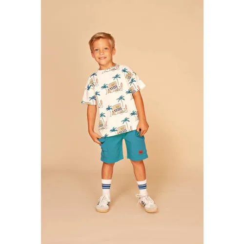 Fris, speels en klaar voor elke dag, dit katoenen jongens T-shirt van Stains&Stories is gemaakt voor kinderen die graag bewegen. De zachte single jersey van 100% katoen voelt soepel aan op de huid en geeft genoeg ruimte om te rennen, klimmen en ontdekken. De combinatie van wit, groen en beige in een all over print zorgt voor een speelse uitstraling die meteen opvalt, zonder te druk te zijn.Comfortabel T-shirt met all over print Gemaakt van 100% katoen, zacht en huidvriendelijk voor dagelijks draagplezier Korte mouwen, ideaal voor warme dagen of onder een vest of sweater Ronde hals die comfortabel aansluit en makkelijk over het hoofd gaat All over print in wit, groen en beige voor een speelse, moderne uitstraling Geschikt voor peuters en schoolkinderen binnen een brede maatboogKlaar voor school, spelen en logeerpartijtjesDit T-shirt past net zo goed bij een korte broek als bij een jeans. Handig voor naar school, een middag buitenspelen of een logeerpartijtje. De soepele stof blijft prettig zitten, ook als er de hele dag volop bewogen wordt.Stains&Stories voor alledaagse avonturenStains&Stories ontwerpt kinderkleding die past bij actief en fantasierijk spelen. De prints en kleuren sluiten aan op de laatste trends, terwijl de pasvorm praktisch blijft voor elke dag. Zo combineert het merk een moderne uitstraling met materialen die prettig aanvoelen en makkelijk te dragen zijn.Dit T-shirt draait moeiteloos mee in het drukke leven van je kind.
