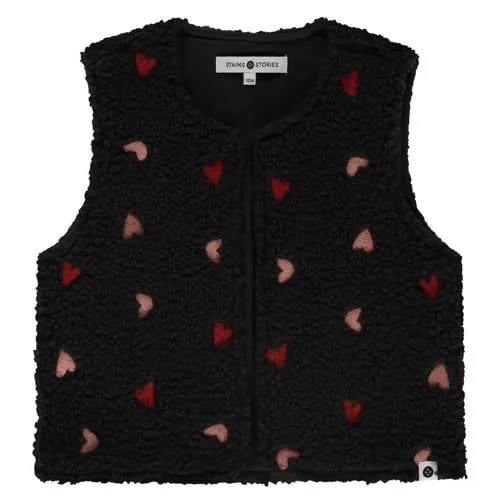 Stains&Stories teddy gilet met hartjes zwart