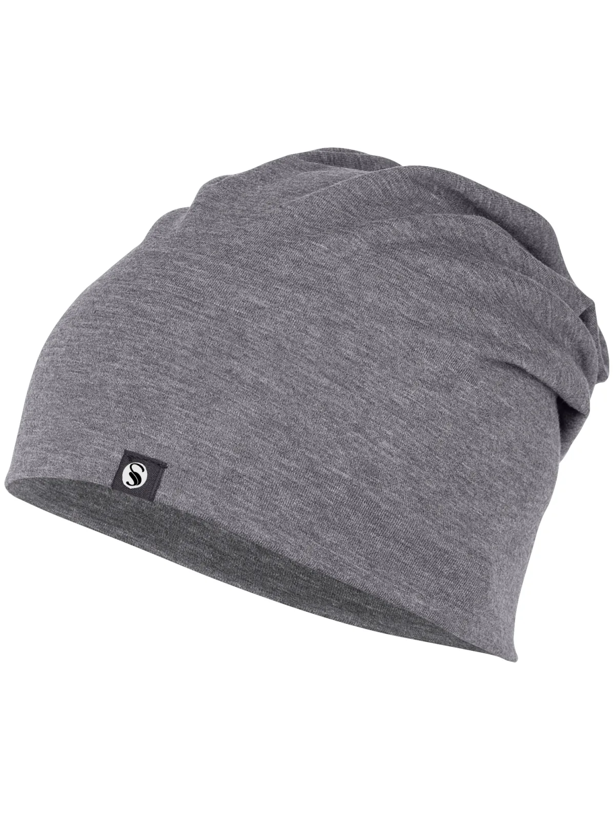 Design: Rechte zoom; Materiaal: Jersey; Motief: Mélange; Type muts: Beanie; Extra's: Label patch/label flag, Voelt zacht aan