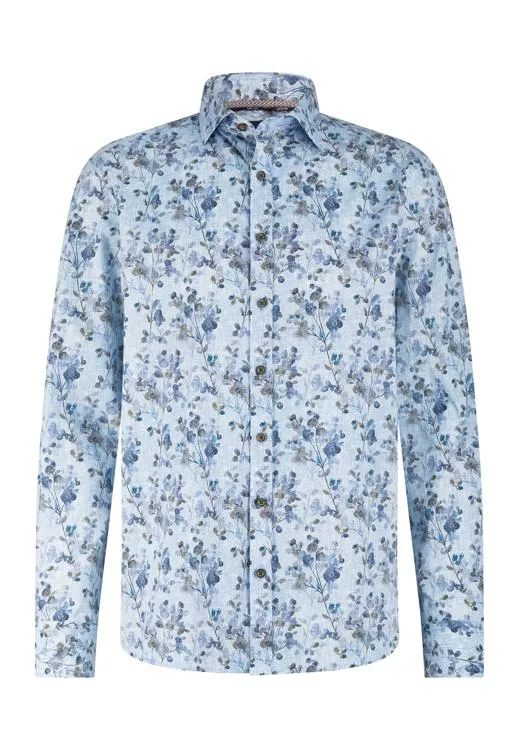 De subtiele blauwe bloemenprint geeft dit herenoverhemd een unieke uitstraling. Het past zowel bij een casual jeans als bij een nette pantalon, perfect voor zowel een dag op kantoor als een ontspannen weekend.