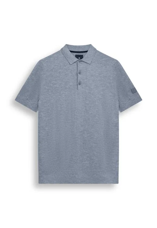 State of Art regular polo met linnen lichtblauw fijn gebreid