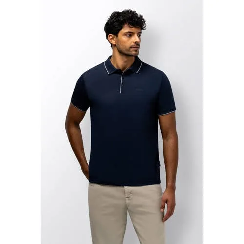 Voor een verzorgde, maar toch ontspannen look is deze State of Art katoenen heren polo met korte mouw een fijne basis in je garderobe. Het effen navy geeft een rustige en stijlvolle uitstraling die makkelijk te combineren is met jeans, chino of korte broek. Dankzij de piqué structuur oogt de polo netjes en voelt de stof tegelijk luchtig aan op de huid. De regular pasvorm biedt genoeg ruimte zonder wijd te vallen, zodat je de hele dag comfortabel beweegt.Kenmerken van deze navy piqué polo Gemaakt van 100% katoen voor een zachte touch en prettig draaggevoel Piqué kwaliteit zorgt voor een subtiel reliëf en een sportief karakter Effen navy kleur, eenvoudig te combineren met verschillende outfits Korte mouwen, ideaal voor warme dagen of onder een vest of trui Polo kraag met knoopsluiting voor een nette, klassieke look Regular fit voor een comfortabele, rechtvallende pasvormAltijd inzetbaar in je dagelijkse outfitsDeze navy polo is geschikt voor veel momenten op een dag. Draag de polo naar kantoor met een nette broek en leren schoenen, of kies in het weekend voor een casual combinatie met sneakers en een lichte jeans. De ademende katoenen stof maakt de polo ook prettig tijdens warm weer of een actieve dag.State of Art: moderne klassiekers voor elke dagState of Art staat bekend om eigentijdse herenmode met een duidelijke knipoog naar klassieke styling. De collecties combineren draagbaar design met aandacht voor details, zodat je eenvoudig een verzorgde outfit samenstelt. Met deze polo haal je een betrouwbaar basicsstuk in huis dat seizoen na seizoen goed van pas komt.Een tijdloze keuze waarmee je snel en eenvoudig een nette, comfortabele look creëert.