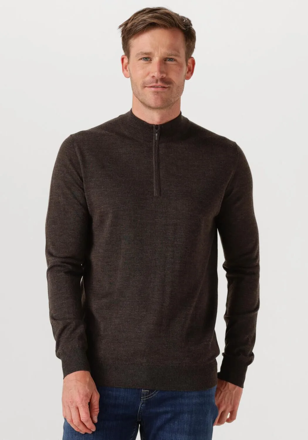 Ontsnap aan de kou met de HALF ZIP trui van STEFANO LAURAN. Deze bruine trui van zachte merino wol houdt je warm tijdens een herfstwandeling in het park of een gezellige avond bij het haardvuur. Combineer 'm met een stoere jeans en stevige laarzen voor een complete herfstlook. De half zip zorgt voor een casual uitstraling en biedt de mogelijkheid om de trui aan te passen aan jouw comfort. Perfect voor heren die stijlvol en comfortabel de herfst en winter willen trotseren.