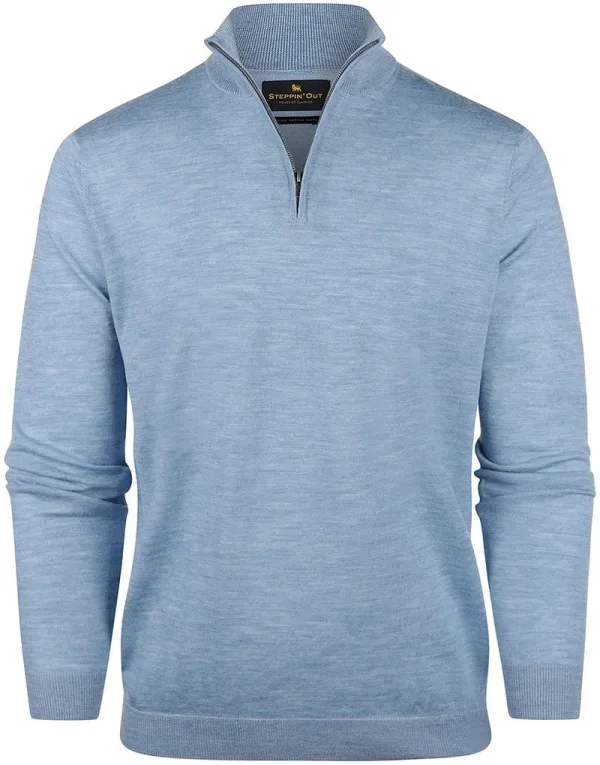 Steppin’ Out Half Zip Trui Merinowol Sky Blue Prijzen