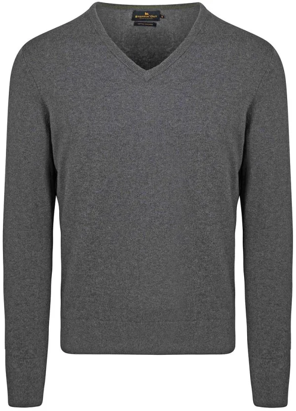 Steppin’ Out Pullover V-hals Merinowol Antraciet Prijzen