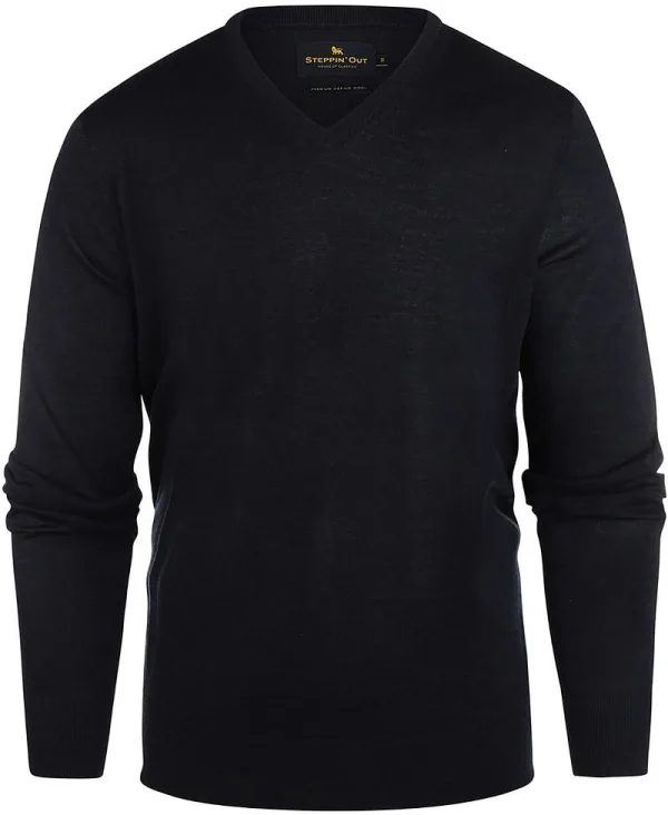 Steppin’ Out Trui V-hals Merinowol Navy Prijzen