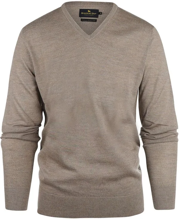 Steppin’ Out Trui V-hals Merinowol Taupe