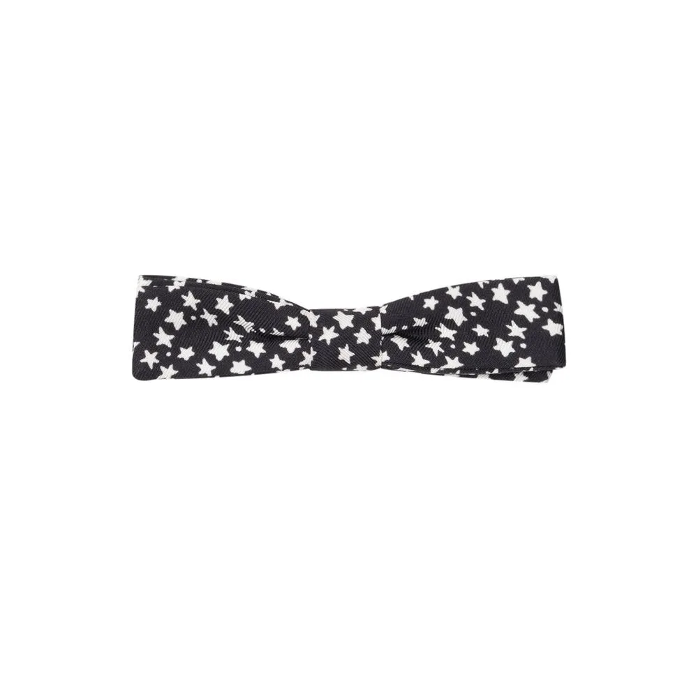 Voeg flair toe, verhoog je stijl. Deze vlinderdas van Dolce & Gabbana brengt een vleugje verfijning in elke formele uitstraling. Gemaakt van luxueuze zwarte zijde en versierd met een algehele witte sterrenprint, is het de perfecte manier om je persoonlijkheid te tonen. Het verfijnde ontwerp zorgt ervoor dat je opvalt in de menigte, waardoor je ensemble een geraffineerde uitstraling krijgt. Ervaar moeiteloze elegantie en maak een blijvende indruk. Een tijdloos accessoire voor de moderne gentleman. Controleer het label voor onderhoudsinstructies.