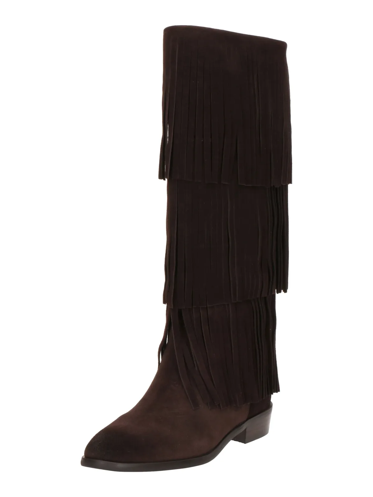 Design: Profielzolen, Versterkte hak; Type sluiting: Slip; Type hak: Blokhak; Materiaal: Leer; Motief: Effen; Materiaal: Suède; Schoenneus: Ronde neus; Extra's: Franjes, Flexibele zool; Hakhoogte: Middelhoge hak (3-7 cm)