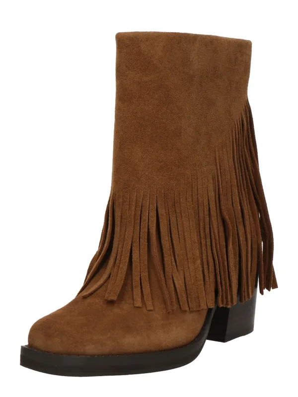 Design: Profielzolen, Versterkte hak; Type sluiting: Slip; Type hak: Blokhak; Materiaal: Leer; Motief: Effen; Materiaal: Suède; Schoenneus: Vierkante neus; Extra's: Franjes, Flexibele zool; Hakhoogte: Hoge hak (7-10 cm)