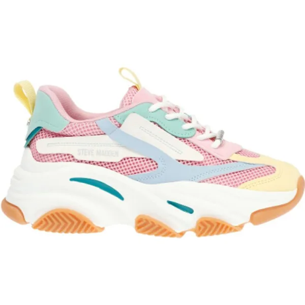 De Steve Madden Possession-E sneaker combineert een trendy chunky silhouet met een speelse Pastel Multi kleurstelling. Het modieuze design en de comfortabele zool zorgen voor optimaal draagcomfort en maken deze sneaker perfect voor dagelijks gebruik en een opvallende streetwear look.