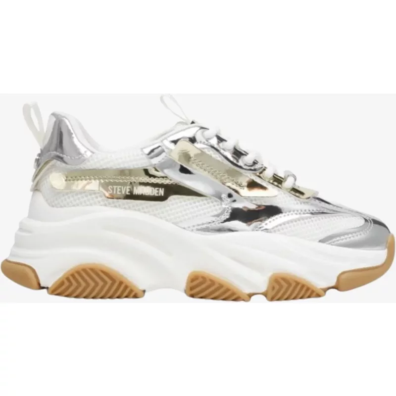 Steve Madden meest gewilde sneaker Possession model in een mooie zilveren en goud materiaal,