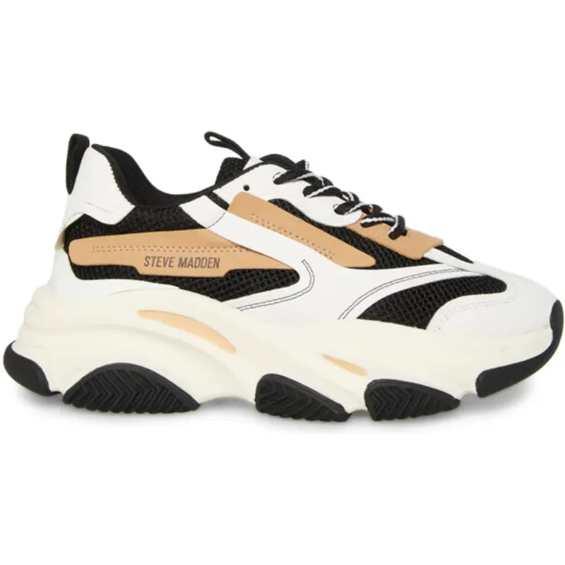De Steve Madden Possession E Zwart/Tan dames sneaker biedt de perfecte combinatie van stijl en comfort. Het zwarte en tan kleurenschema maakt deze sneaker veelzijdig en geschikt voor verschillende outfits. Het moderne ontwerp zorgt voor een sportieve, maar verfijnde look, terwijl de hoogwaardige materialen voor langdurig draagcomfort zorgen. Of je nu een casual dag hebt of een actieve lifestyle, de Steve Madden Possession E Zwart/Tan is de ideale keuze voor een trendy en comfortabele look.