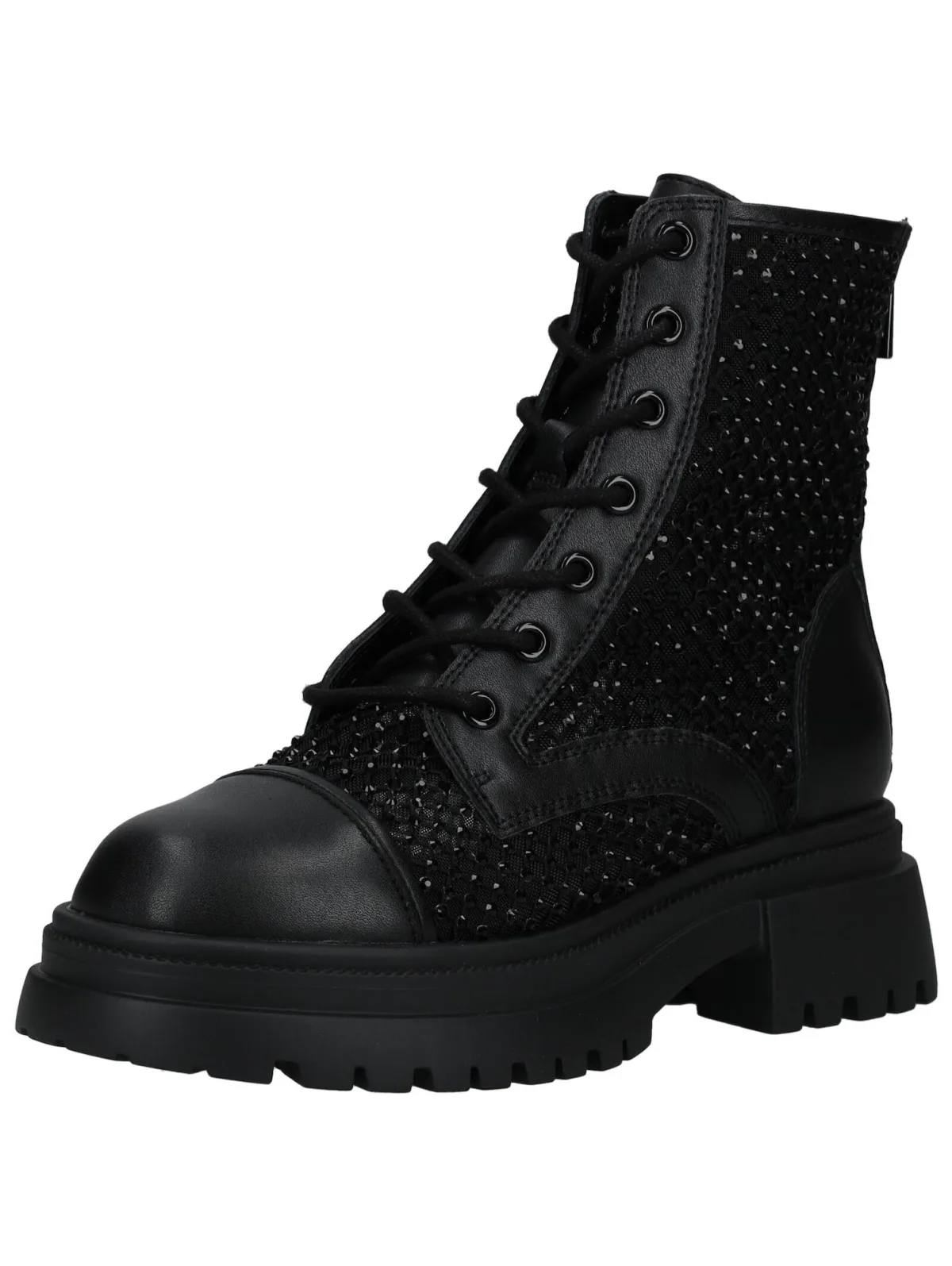 Design: Rug rits, Vetering met 7 gaten, Profielzolen, Versterkte hak, Materiaal mix; Type sluiting: Snoersluiting; Type hak: Blokhak; Materiaal: Leer; Plateau: Met plateau; Materiaal: Glad leer; Schoenneus: Ronde neus; Extra's: Mesh, Met halfedelstenen, Flexibele zool, Metalen oogjes; Hakhoogte: Middelhoge hak (3-7 cm)