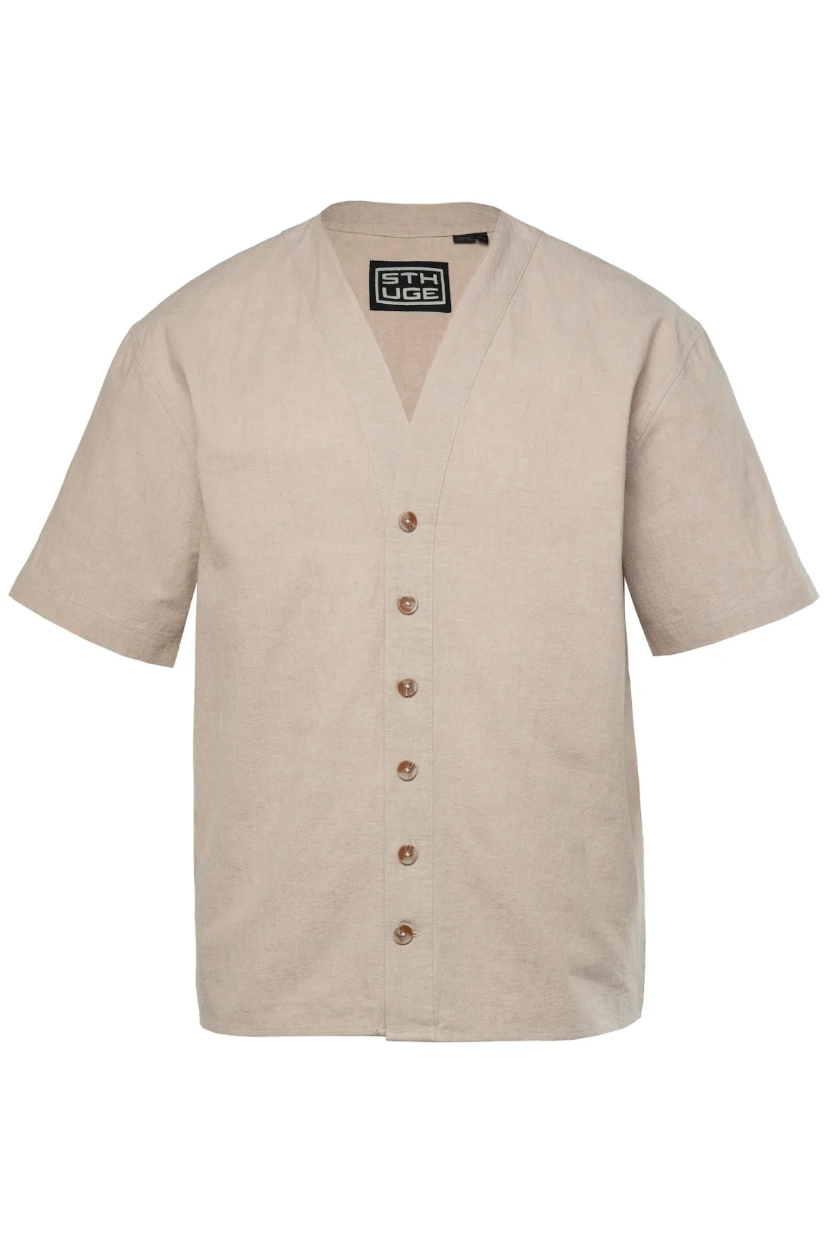 Design: Knop placket; Materiaal: Linnen; Motief: Effen; Kraag: Zonder kraag; Extra's: Op staal naden; Pasvorm: Comfort fit; Armlengte: Lange mouw