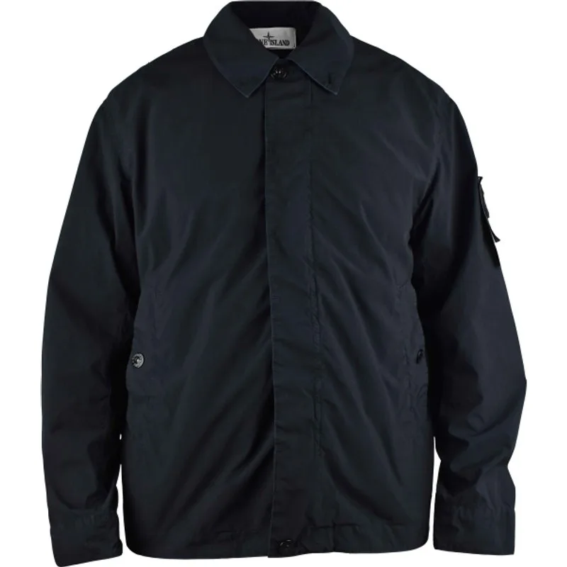 Stone Island jas met kompasbadge in marineblauw.Jas met rits over volledige mouwen.Voorzakken met knopen.Sluiting met rits en knopen.Stone island logopatch op de linkermouw.