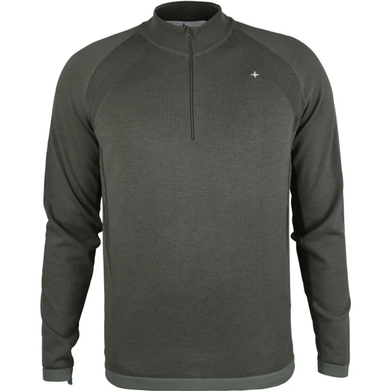 Fijn gebreide trui Stone Island van kaki wol.Hoge kraag met halve rits.Klein wit sterretjeslogo op linkerschouder.Contrasterende biesjes.Made in Italy.