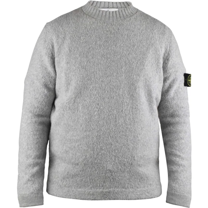 Sweatshirt Stone Island van grijze wol.Lange mouwen.Ronde hals.Zwarte Stone island logopatch op de linkermouw.