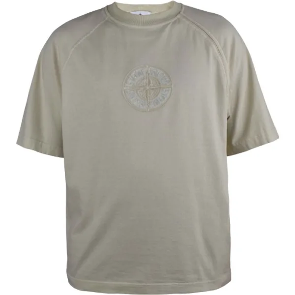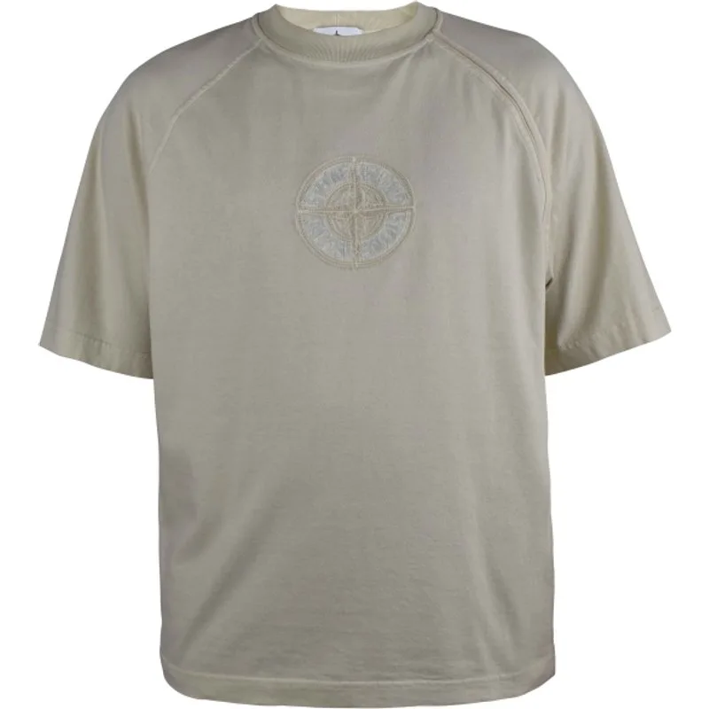 T-shirt Stone Island van lichtgeel katoen.Korte mouwen.In het midden een ton-sur-ton geborduurd logo.Ronde hals met ribboord.Made in Italy.