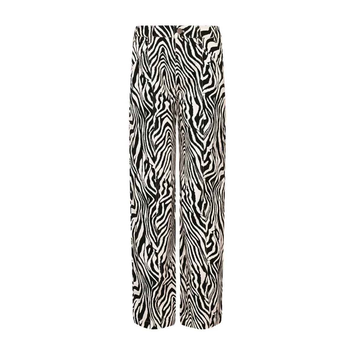 Een paar jeans met een middelhoge taille en losse pijpen, met brede zakken aan de voor- en achterkant