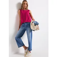 De Street One basic top voor dames heeft een cleane look en brede bandjes. De boothals voegt een vrouwelijk accent toe en de elastische zoom zorgt voor een comfortabele pasvorm. De viscosemix met stretch voelt aangenaam zacht aan en maakt deze top de ideale combinatie voor elke dag.