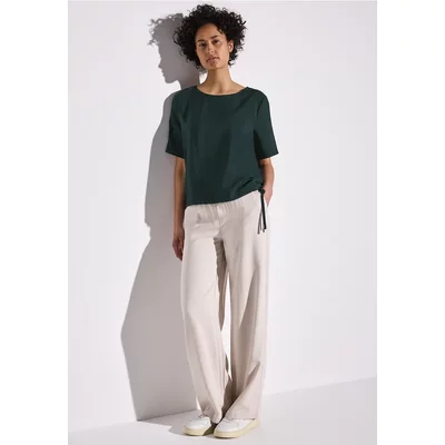 Deze effen blouse met korte mouwen van Street One voor dames heeft een ronde hals en een tunnelkoord aan de onderkant. Door de zachte viscosemix is hij bijzonder comfortabel om te dragen.