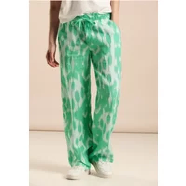 Street One damesbroek met hoge taille, linnen broek in loose fit, wijde pijpen, elastische band en trekkoord, steekzakken aan de zijkant, grafisch ikatpatroon