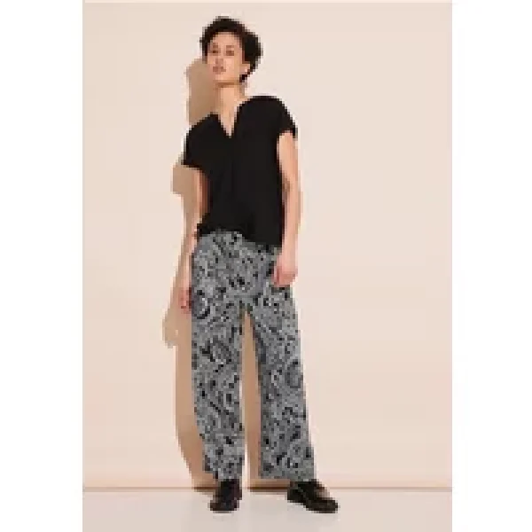 Street One damesbroek met hoge taille, loose fit damesbroek, hoge taille met wijde pijpen, steekzakken, elastische band, tijdloos paisley-patroon