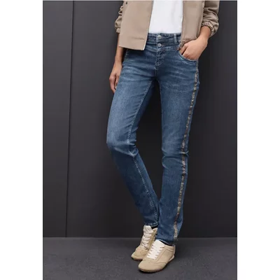Deze jeans in Jane-stijl van Street One voor dames heeft slanke pijpen en een Mid Waist. De relaxte pasvorm en de katoenmix met stretch zorgen voor een hoog draagcomfort, terwijl de blauwe wassing en 5-pocketstijl voor een klassieke look zorgen. Deze jeans is de ideale metgezel voor je dagelijkse looks.