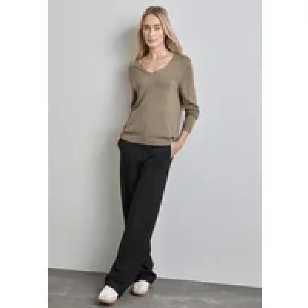 Deze fijn gebreide trui van Street One voor dames heeft een vrouwelijke V-hals en zachte boorden. De aangename viscosemix zorgt voor een hoog draagcomfort. Een perfecte allrounder voor dagelijks gebruik.