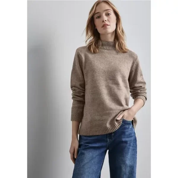 Deze gebreide trui van Street One voor dames houdt je lekker warm dankzij de col en de zachte materiaalmix. De lange mouwen met manchetten zorgen voor behaaglijk comfort. Een must-have voor het koude seizoen.